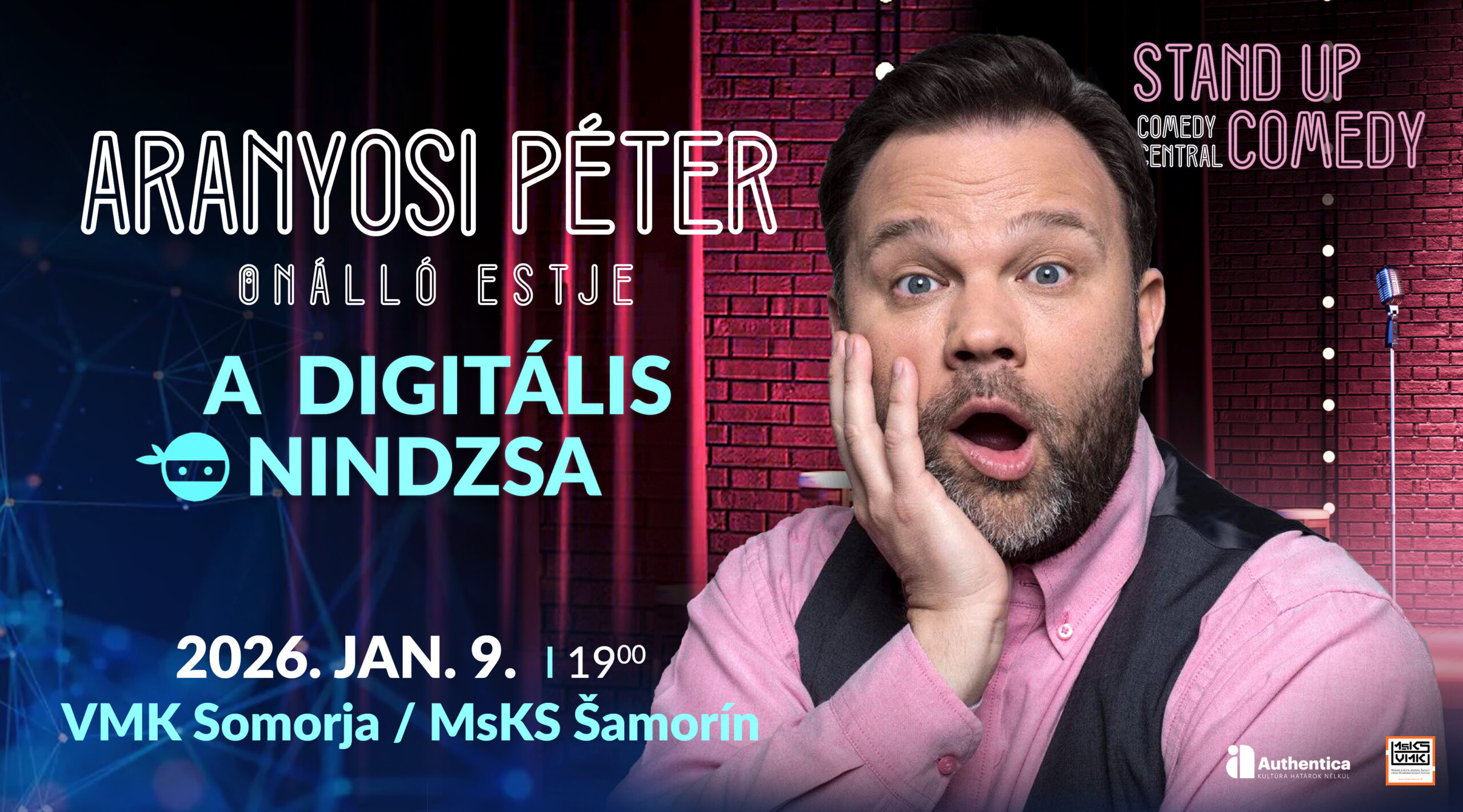 A legendás humorista új önálló estjében arról mesél, hogyan lehet túlélni a PIN-kódok, mobilok, közösségi oldalak és mesterséges intelligencia világában. Aranyosi sajátos iróniával és éleslátással figurázza ki a mindennapokat, a társadalmi jelenségeket és a showbiznisz világát.