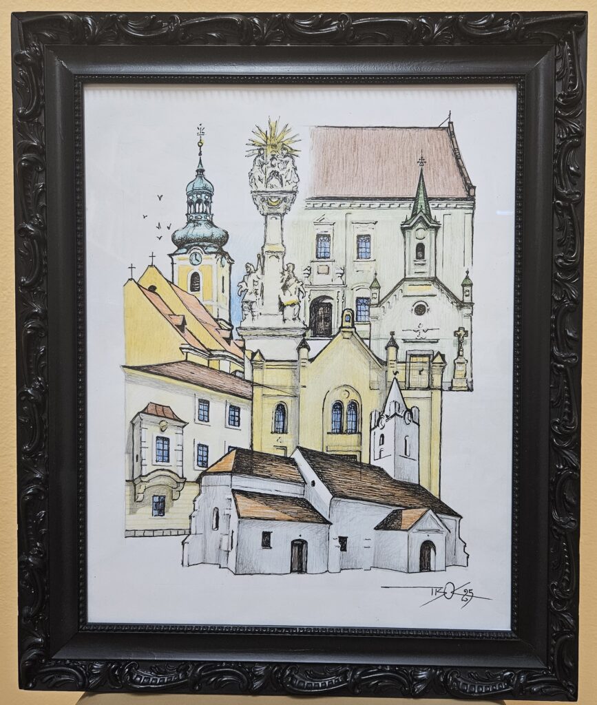 Adatok: 47 x 38 cm, grafika, vegyes technika, üvegezett fakeret
